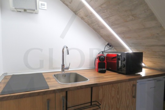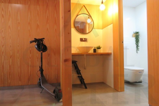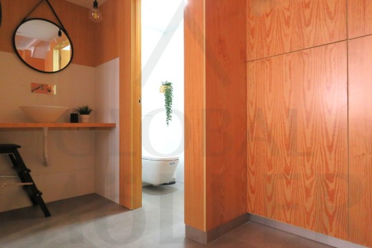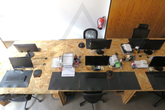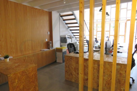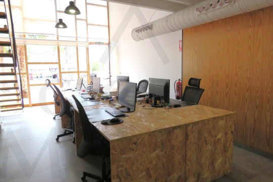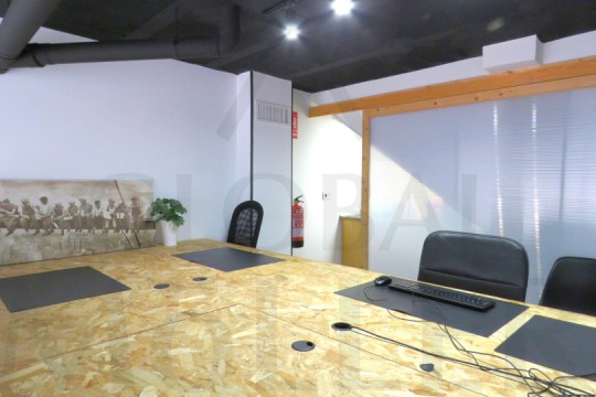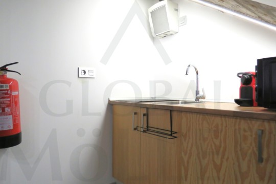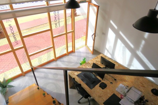 2. En Planta Alta o de Altillo, sala de reuniones, con más puestos de trabajo, y una pequeña zona de cocina, integrada y con puerta corredera, placa de cocción, fregador, y extracción de humos.