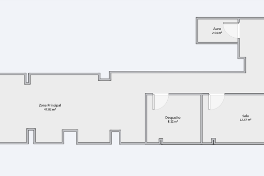 Superficie Construida total de 91m², repartidos en varias estancias bien diferenciadas. Entada, Zona Principal, Despacho, Espacio con Lavabo, Espacio con fregadero, Baño de Señoras y Baño de Caballeros.