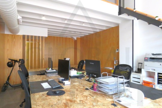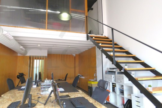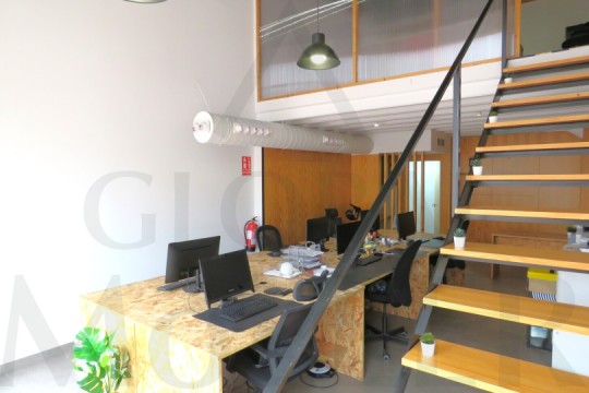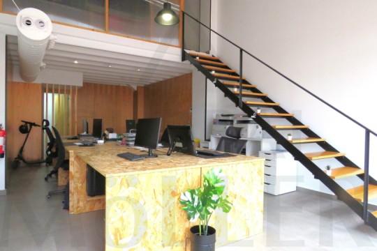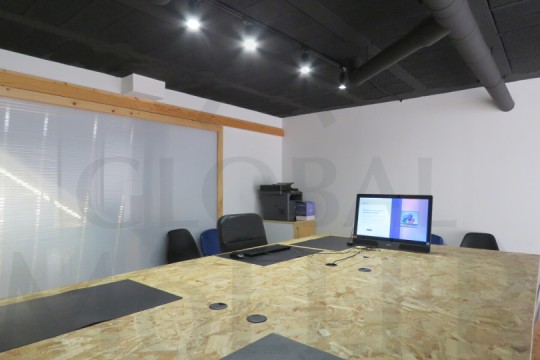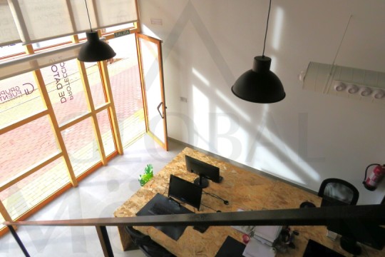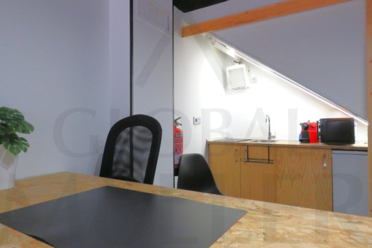 2. En Planta Alta o de Altillo, sala de reuniones, con más puestos de trabajo, y una pequeña zona de cocina, integrada y con puerta corredera, placa de cocción, fregador, y extracción de humos.