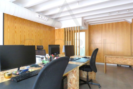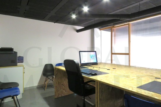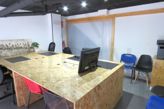 1. Planta Baja, encontramos zona de trabajo con 7 puestos de trabajo. Amplia Armariada de Almacenaje, y Baño.