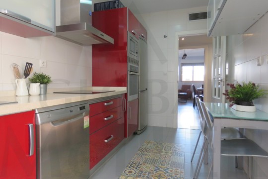 Amplia Cocina amueblada y equipada con electrodomésticos con una gran Galería o Lavadero.