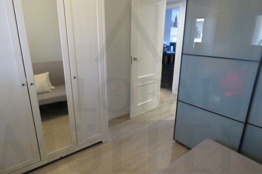 Carpintería Exterior Aluminio Termolacado Gris con Doble Acristalamiento, Carpintería Interior Lacada Blanca y Solados en Tarima Flotante.